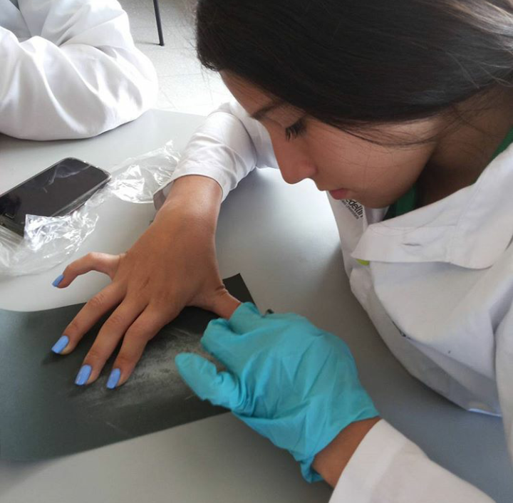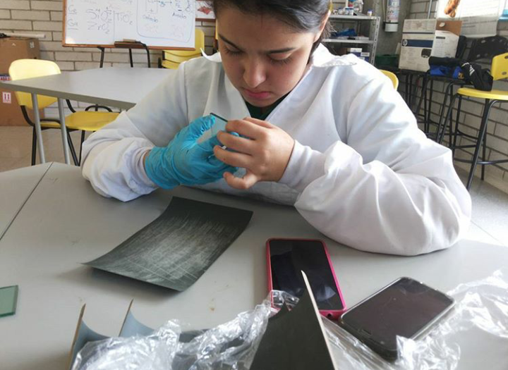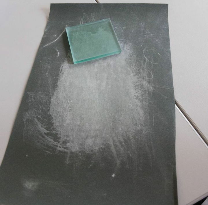 Aquí estamos lijando los vidrios 5*5 para realizar una prueba.